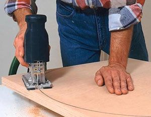 Чем тоньше полотно, тем меньший радиус можно выдержать без смятия краев. Для дугообразных линий длиной до 500 мм применяют лобзик со стабилизатором наклона подошвы. При этом внутренний край линии усиливают с обратной стороны струбциной, чтобы не допустить вибрации.