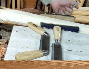 Работа со скобелем и художественным топором для предварительного формообразования