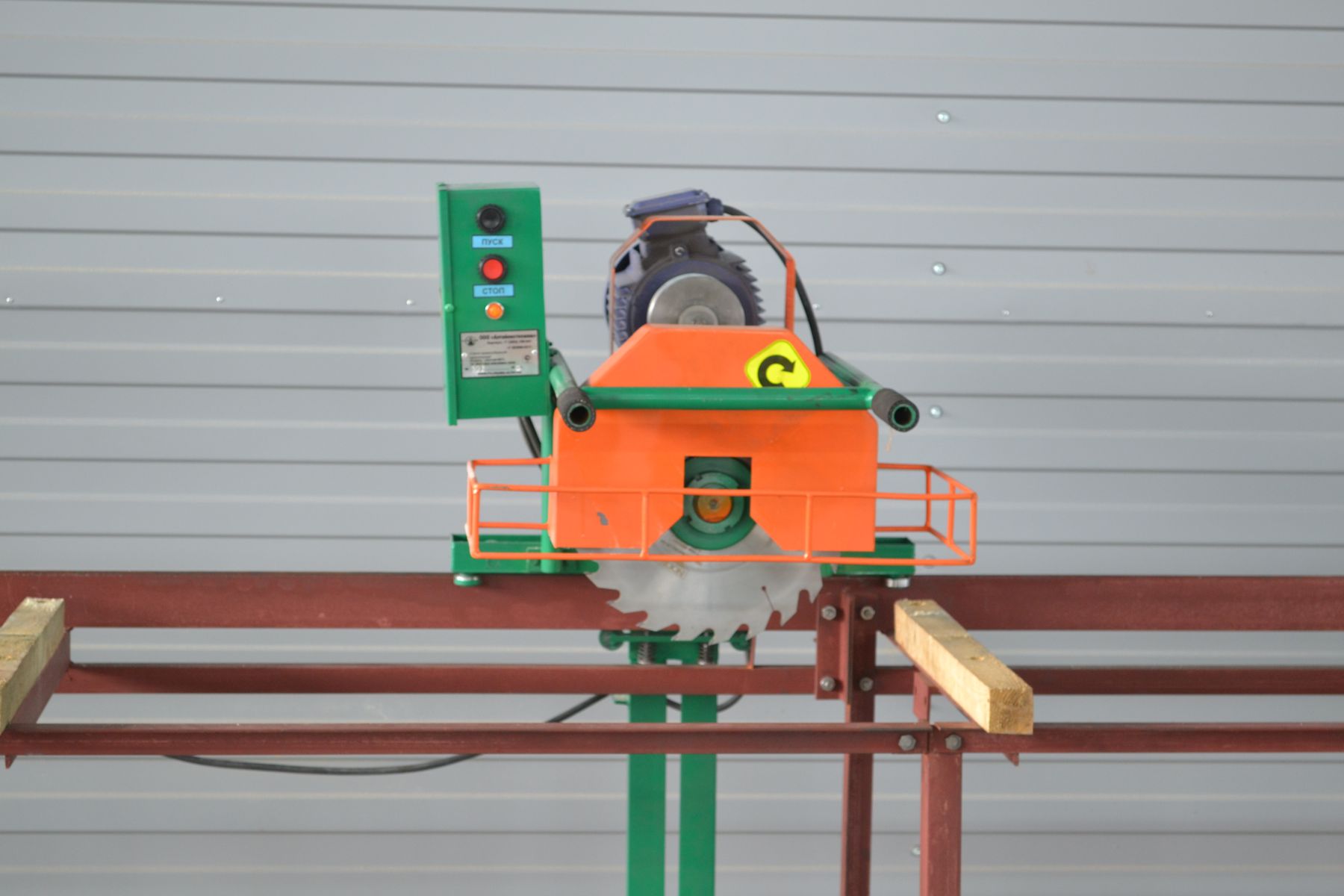 Исключительно жесткая и безопасная конструкция. В конструкции станков применены беззазорные направляющие, что обеспечивает идеальную точность пиломатериала. Первоначально обрезается обзол, далее заготовка базируется гранью по упорам, имеющим диапазон регулировки 5...250мм. Станок оптимален для производства бруска, заготовки под погонаж, индивидуального безотходного раскроя доски. Перемещение пильного блока осуществляется вручную оператором станка за поручни. Для удобства транспортировки рама станка разбирается на несколько составляющих.