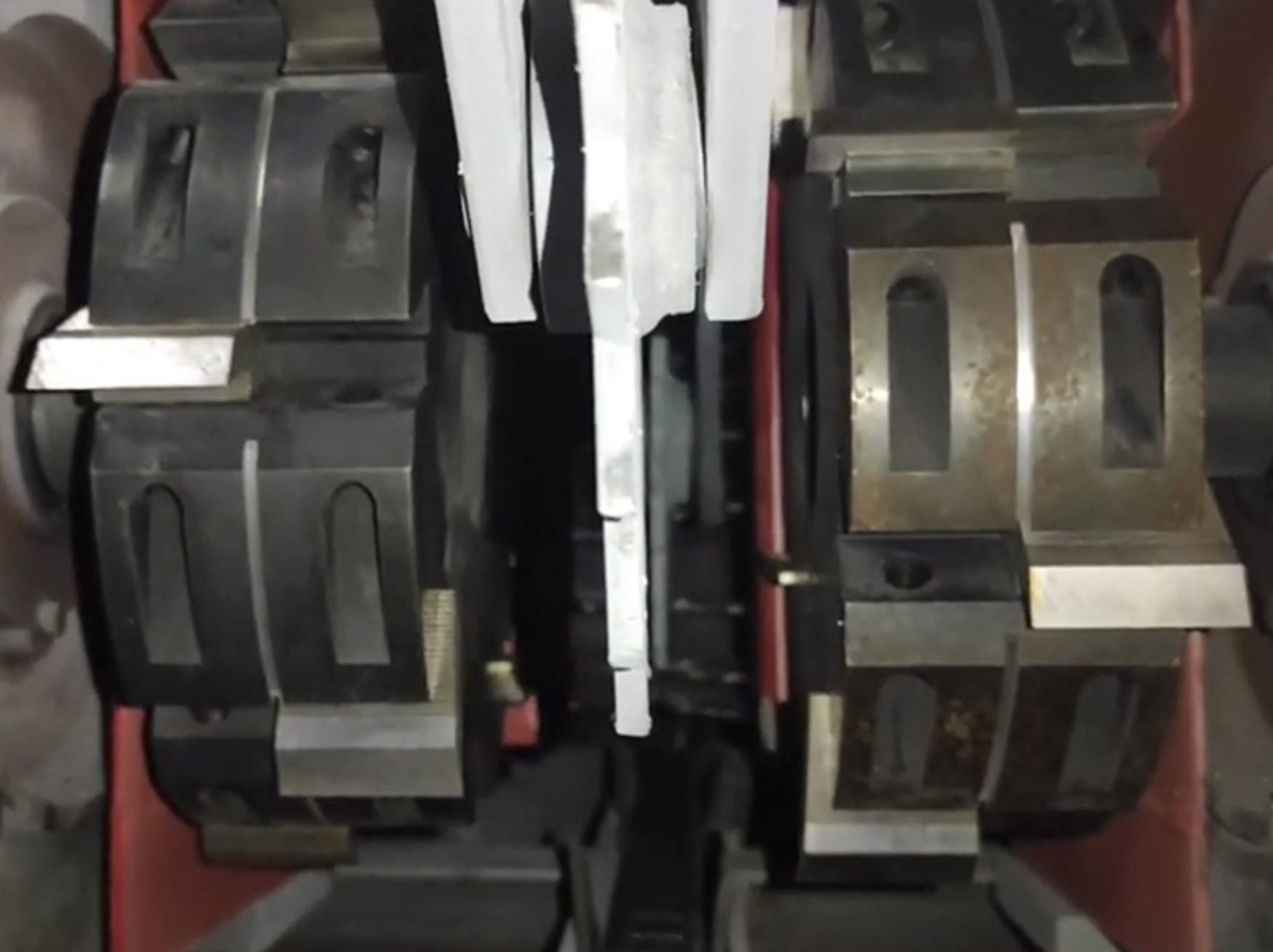 Фрезерно-брусующий блок (в комплектации устройство плавного пуска двигателя) состоит из двух электродвигателей мощностью 45 кВт каждый, смонтированных на линейных направляющих. На валах двигателей установлены фрезы, включающие в себя барабан с бланкетными ножами. Конструкция фрез позволяет фиксировать их на валу двигателя в заданном положении, что обеспечивает изначально симметричное положение фрез относительно оси конвейера.
