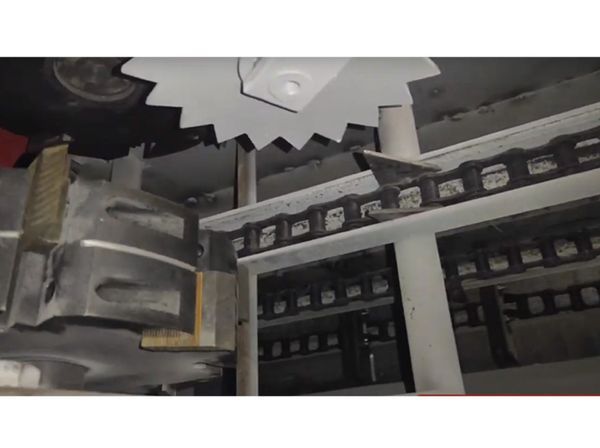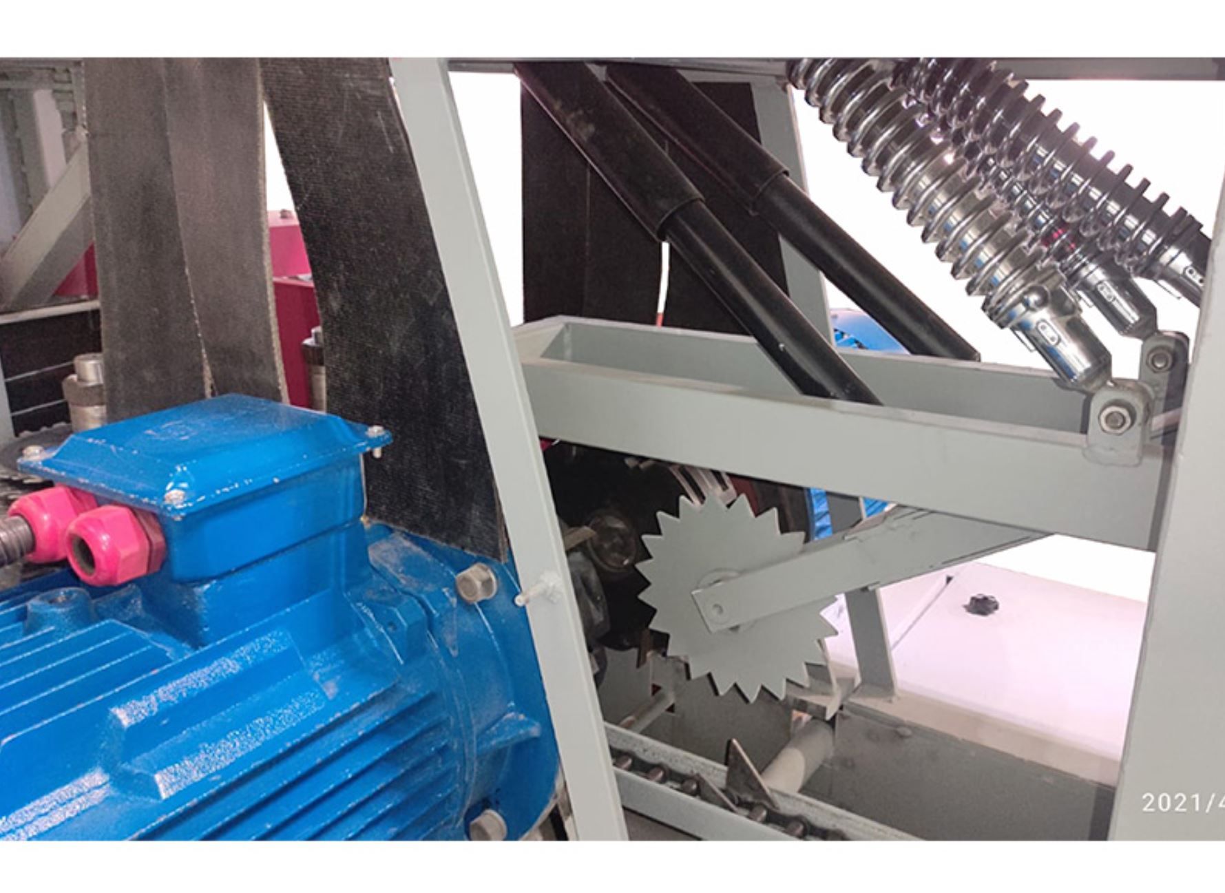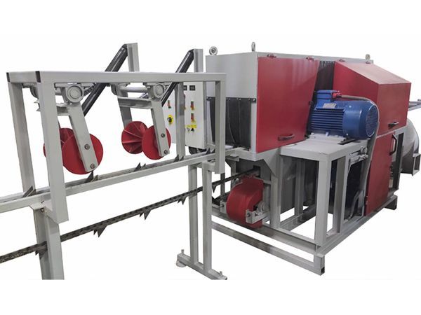 Транспортер скребковый цепной предназначен для автоматического удаления стружки, щепок и опилок из-под станины фрезерно-брусующего блока и пильного узла. Наличие скребкового транспортера в значительной мере повышает не только производительность станка, а также культуру и удобство. Конструктивно транспортер состоит из специальной транспортерной цепи, перемещающейся по направляющим за счёт мотор-редуктора, натяжение цепи осуществляется натяжным блоком с возможностью регулировки.