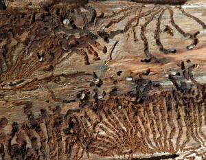 Жуки обычно поражают наиболее уязвимые и питательные участки. На доске это могут быть места рядом с сучками, участки заболони или трещины.