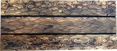Если необходимо получить мягкий, приглушенный эффект, то подойдет кедр или лиственница. Для проявления яркой текстуры лучше использовать лиственные породы. Также интересный эффект можно получить, комбинируя обугленные и не обугленные участки, что придаст изделию неповторимый вид.