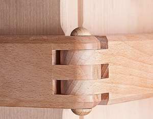 Одним из распространенных способов является использование круглых шипов. Для этого в двух деталях высверливаются отверстия диаметром 8-12 мм, в которые вставляется деревянный стержень.