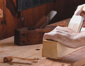 При работе с ручным электроинструментом необходимо избегать сильного прижима, чтобы не создать волнообразный рельеф, особенно на мягких породах. Шлифовку всегда ведут вдоль волокон, завершая процесс обработкой эксцентриковой машиной, которая устраняет все продольные риски.