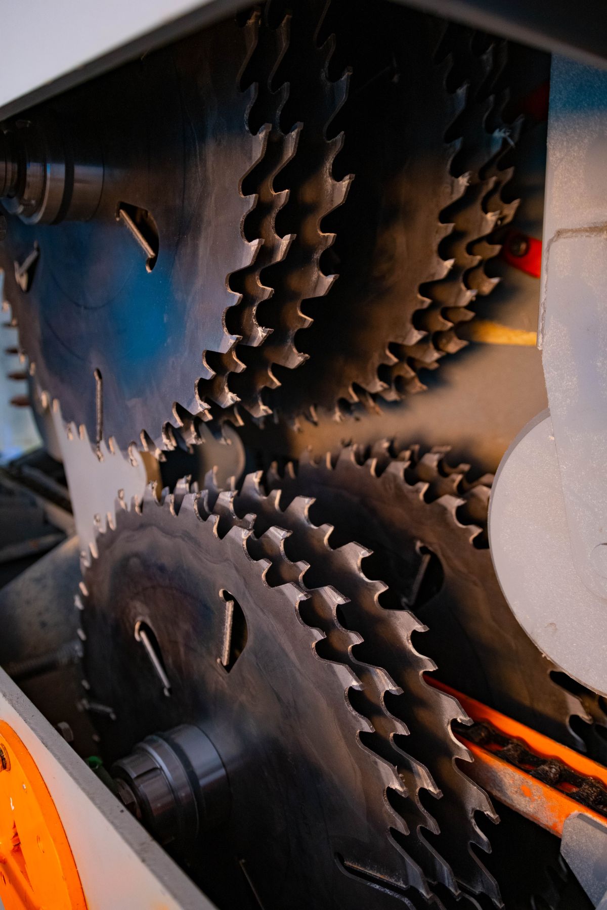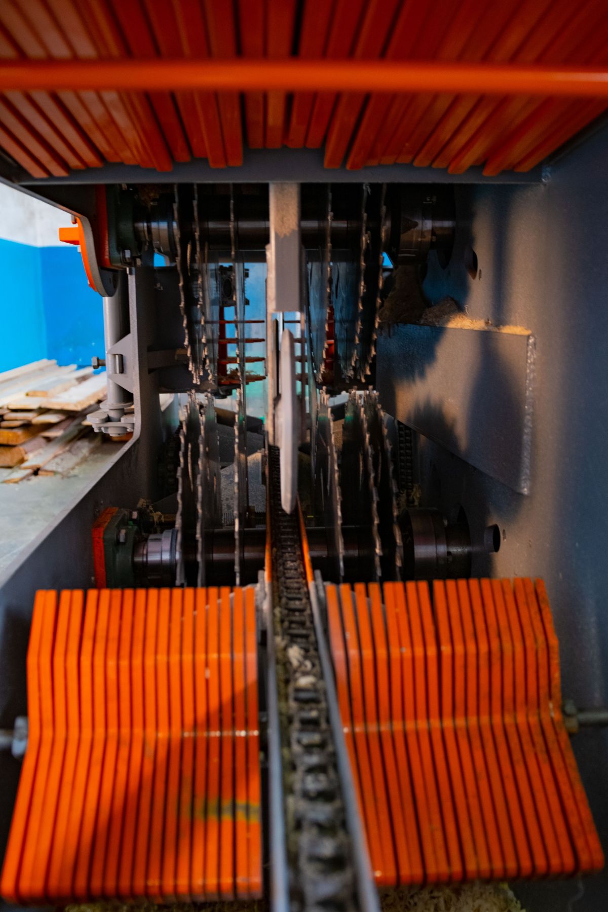 На станке устанавливается до 8 пил на каждый вал двигателя. Общее количество пил до 16 штук.