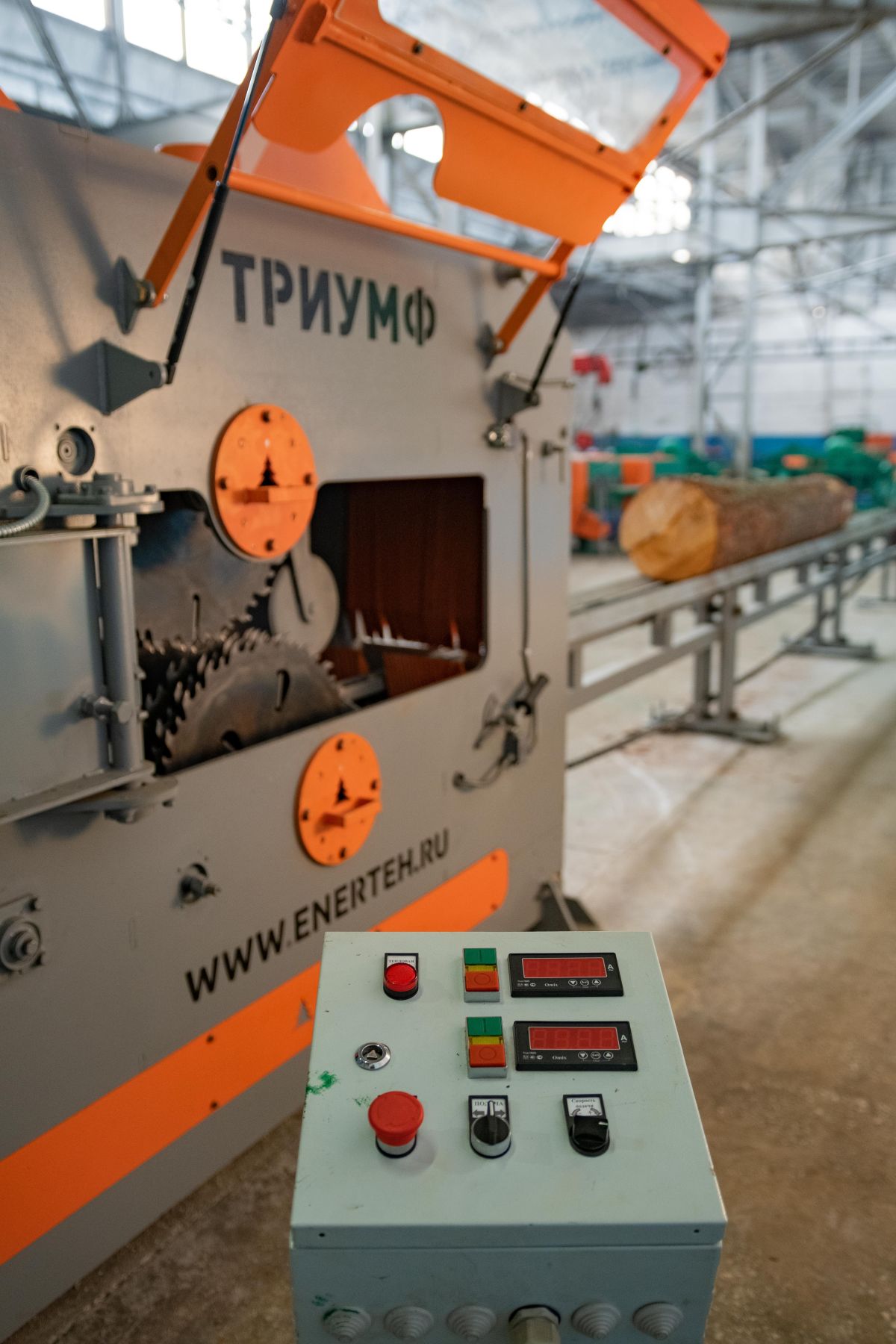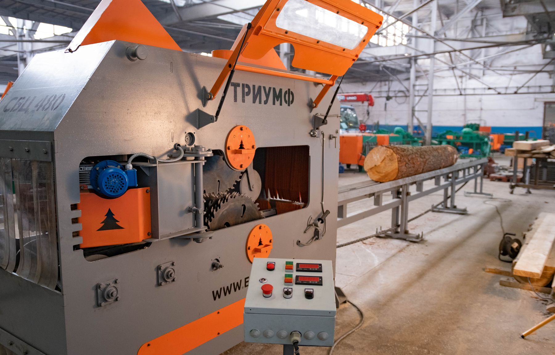 Двухвальный бревнопильный станок «Триумф» 16П480 Classic предназначен для распиловки бревен диаметром до 470 мм для получения лафета и бруса.