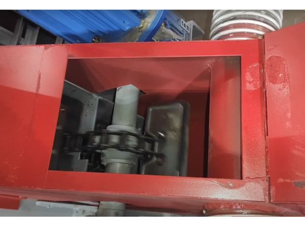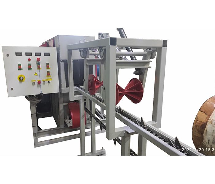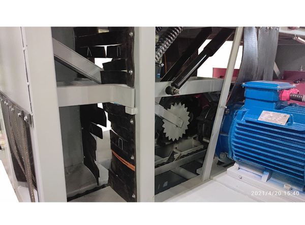 Транспортер скребковый цепной предназначен для автоматического удаления стружки, щепок и опилок из-под станины фрезерно-брусующего блока и пильного узла. Наличие скребкового транспортера в значительной мере повышает не только производительность станка, а также культуру и удобство. Конструктивно транспортер состоит из специальной транспортерной цепи, перемещающейся по направляющим за счёт мотор-редуктора, натяжение цепи осуществляется натяжным блоком с возможностью регулировки.